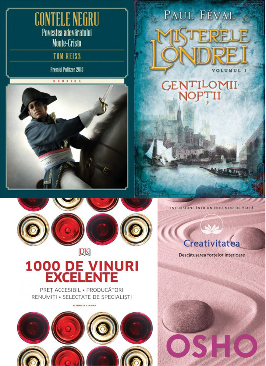 LITERA – Contele negru. Povestea adevăratului Monte-Cristo, de Tom Reiss; Misterele Londrei. Gentilomii nopții (vol. 1), de Paul Féval; 1000 de vinuri excelente; Osho. Creativitatea (vol. 15).