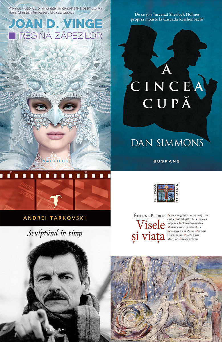 NEMIRA – Regina zăpezilor, de Joan D. Vinge; A cincea cupă, de Dan Simmons; Sculptând în timp, de Andrei Tarkovski; Visele și viața, de Étienne Perrot.