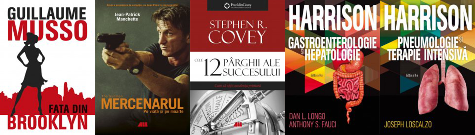 Fata din Brooklyn, de Guillaume Musso; Mercenarul, de Jean-Patrick Manchette; Cele 12 pârghii ale succesului, de Stephen R. Covey; Harrison. Gastroenterologie și hepatologie, de Dan L. Longo și Anthony S. Fauci; Harrison. Pneumologie și terapie intensivă, de Joseph Loscalzo.
