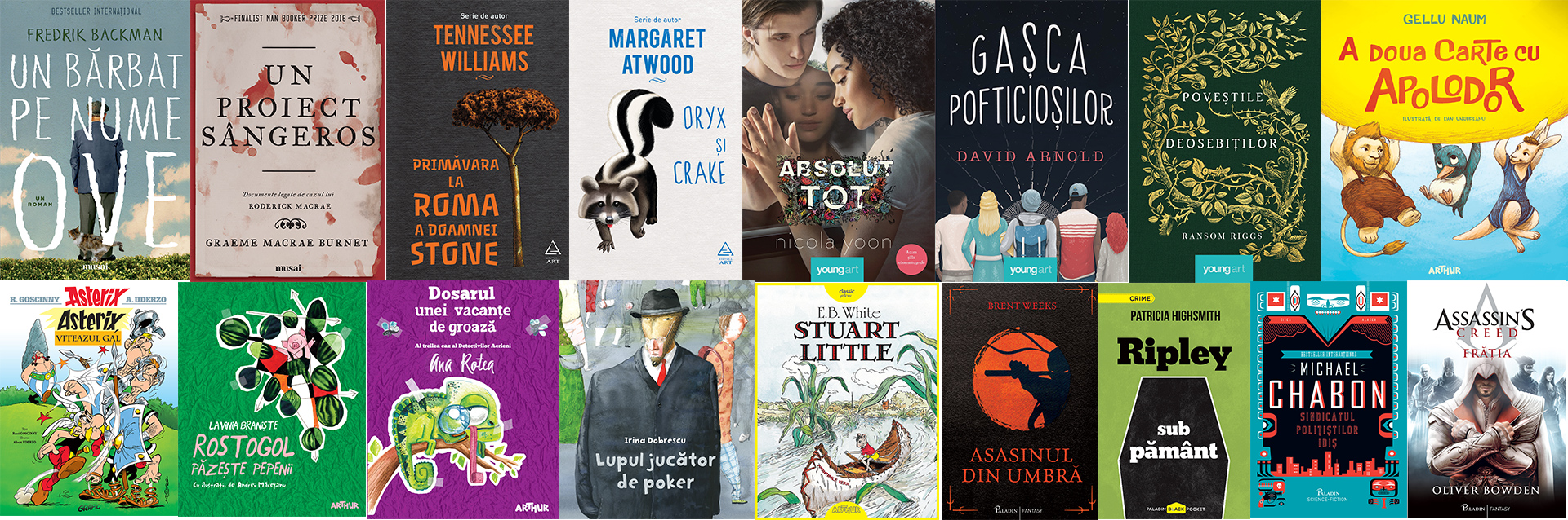 Art: Un bărbat pe nume Ove, de Fredrik Backman; Un proiect sângeros, de Graeme Macrae Burnet; Viața secretă a marilor scriitori, de Robert Schnakenberg; Lumină în august, de William Faulkner; Pogoară-te, Moise, de William Faulkner; Primăvara la Roma a doamnei Stone, de Tennessee Williams; În căutarea timpului pierdut 6. Timpul regăsit, de Marcel Proust; Oryx și Crake, de Margaret Atwood; Lenin Dada, de Dominique Nogouet; Alegerea Sofiei, de William Styron; Maestrul și Margareta, de Mihail Bulgakov; Beznă vizibilă, de William Styron; Jurnal trist, de Katherine Mansfield.
