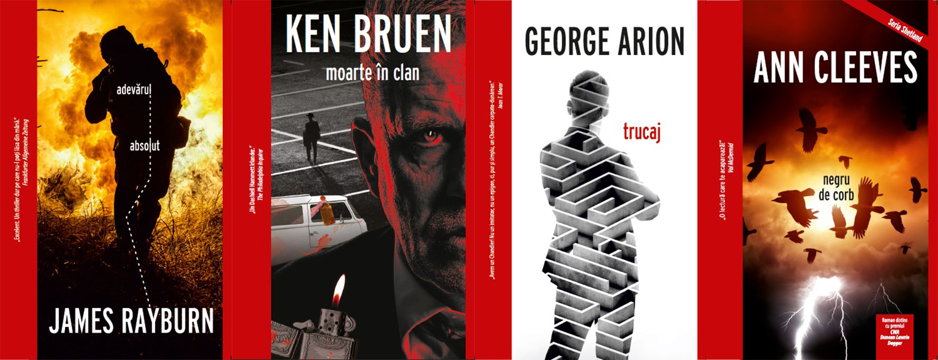 Adevărul absolut, de James Rayburn; Moarte în clan (vol. 2 din seria „Jack Taylor), de Ken Bruen; Trucaj (seria „Andrei Mladin”), de George Arion; Negru de corb (primul volum din seria „Shetland”), de Ann Cleeves.