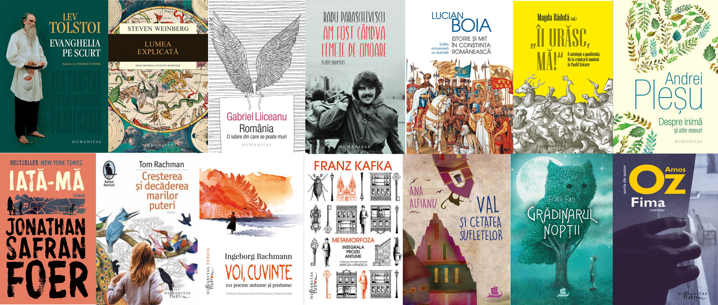 Humanitas Fiction: Iată-mă, de Jonathan Safran Foer; Creșterea şi decăderea marilor puteri, de Tom Rachman; Vanessa şi sora ei, de Priya Parmar; Amurgul marinarului, de Yukio Mishima; Fratricizii, de Nikos Kazantzakis; Fima, de Amos Oz; Voi, cuvinte. 101 poeme antume și postume, de Ingeborg Bachmann; Mary, de Aris Fioretos; Metamorfoza. Integrala prozei antume, de Franz Kafka; Aviatorul, de Evgheni Vodolazkin.