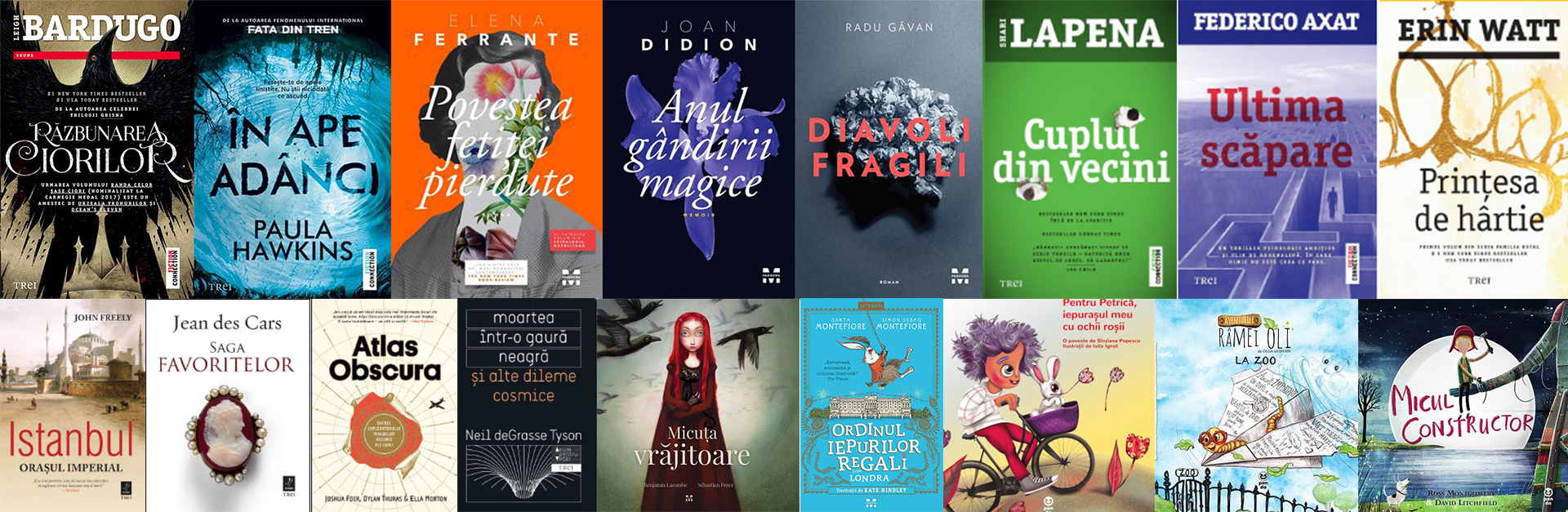 Io contra Statele Unite ale Americii, de Paul Beatty; Dansând în întuneric, vol. IV din seria „Lupta mea”, de Karl Ove Knausgård; Numele meu e Lucy Barton, de Elizabeth Strout; Un bărbat și o femeie, de Jojo Moyes; Un ghid al detoxifierii în 15 zile, de Ligia Pop; Unde nu-i cap, vai de popoare, de Dragoș Pătraru; Drumul spre iad. Europa 1914–1949, de Ian Kershaw.