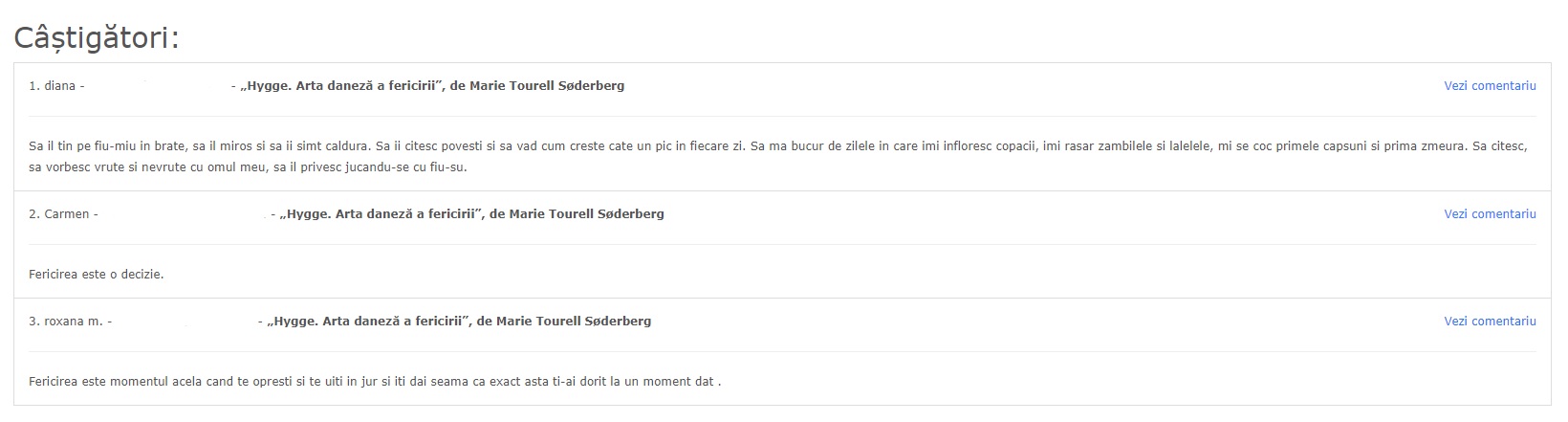 Împreună cu prietenii de la Editura Trei am organizat un concurs ce are ca premii 3 volume din Hygge. Arta daneză a fericirii, de Marie Tourell Søderberg, de care se pot bucura 3 cititori norocoși.