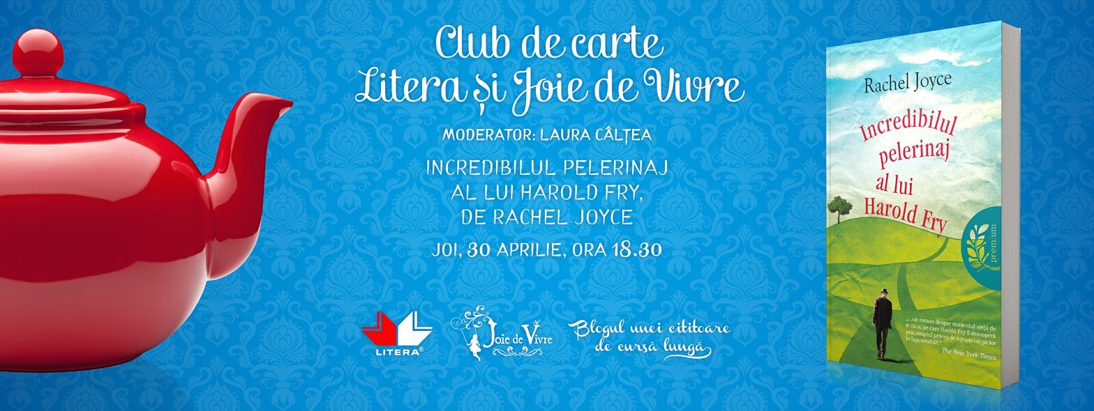 Întrucât următoarea carte pe care o vom discuta la Clubul de lectură Litera și Joie de Vivre este Incredibilul pelerinaj al lui Harold Fry de Rachel Joyce, am zis că ar fi nimerit un concurs ce o va avea ca premiu. Prietenii de la Editura Litera mi-au oferit nu una, ci trei cărți, așa că trei dintre voi pot câștiga câte un exemplar din acest roman. Și, dacă sunteți din București și v-ar face plăcere, vă așteptăm să o și discutăm împreună la Joie de Vivre, Salon du The pe 30 aprilie, lângă un ceai bun și o prăjitură gustoasă.