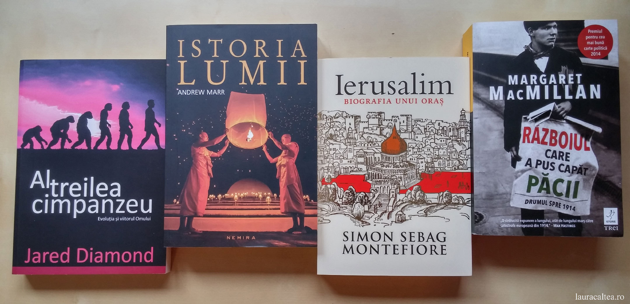 Foarte interesante listele, atat cele de mai sus cat si cele din „Cele mai frumoase carti citite in 2015”! Eram in dubiu cu cateva carti („Frumoasele ruine”, „Anul Zero. 1945, o istorie” si „Fotograful Curtii Regale”) dar listele m-au convins si azi le-am comandat. M-am bucurat sa regasesc si „Distanta dintre noi”, nu era notata in lista de „carti citite” de pe blog si voiam ca intr-un viitor mai mult sau mai putin indepartat sa citesc ceva de Jhumpa Lahiri (cred ca am in biblioteca toate cartile ei aparute in limba romana dar am tot amanat...). In lista mea din acest an am „Laur” si „Manuscrisul fanariot” iar acum citesc „O lume fara sfarsit” - Ken Follett (mi s-a facut pofta de un roman istoric si citisem anul trecut si imi placuse „Stalpii Pamantului”). M-a surprins putin absenta celor 2 carti ale lui Simon Sebag Montefiore din „lista primelor 10” dar probabil a fost concurenta mare...Astept cu nerabdare comentariile la „Ierusalim” si „Razboiul care a pus capat pacii”, intentionez sa le citesc in 2017/2018. Toate cele bune!