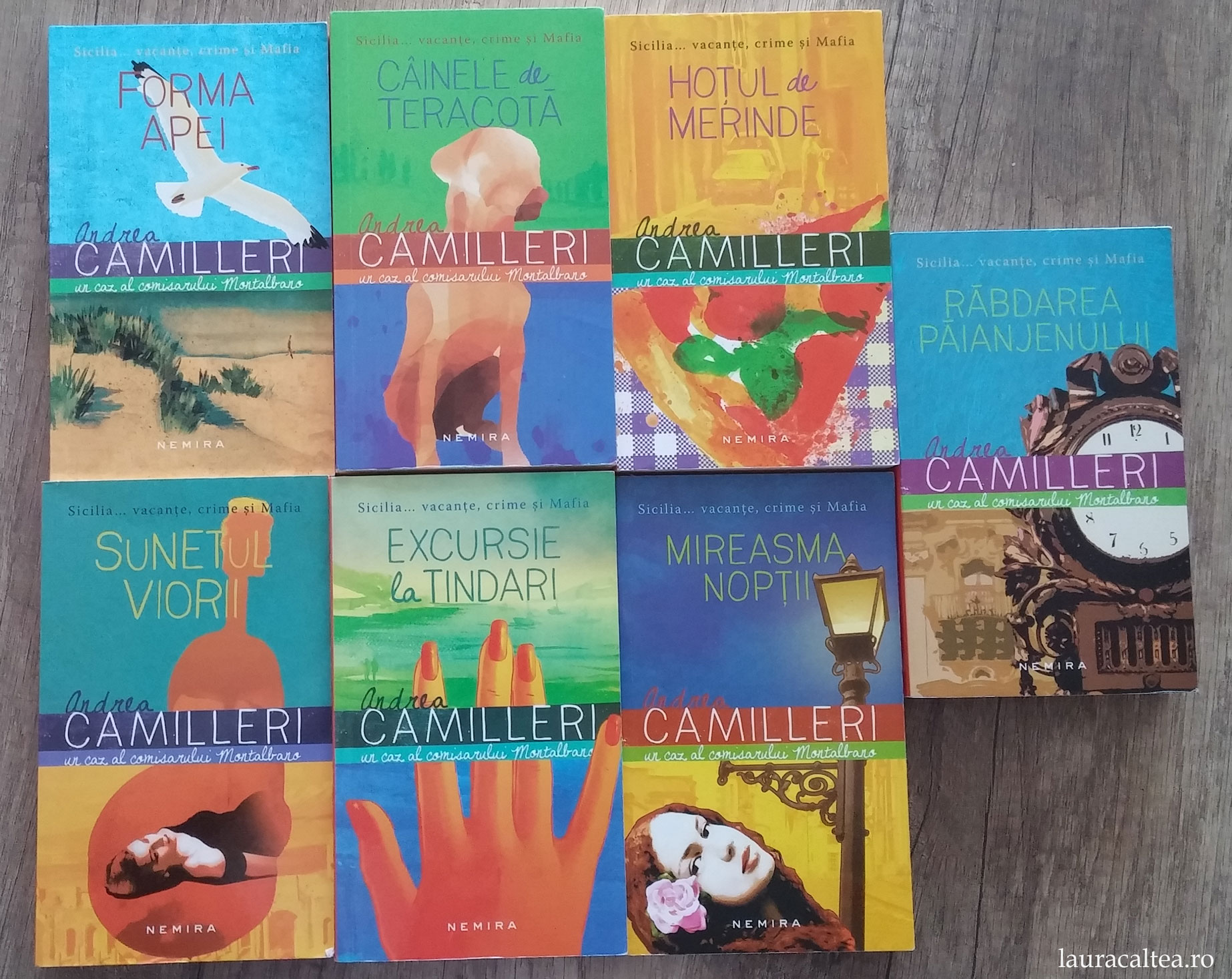 • Seria Comisarul Montalbano, de Andrea Calogero Camilleri. Sunt un mare fan al comisarului Montalbano și al scriiturii lui Camilleri. Seria asta este, pe de o parte, perfectă de luat în vacanță sau de citit seara pentru relaxare (eu le recitesc încontinuu de când le-am descoperit, de obicei o dată pe an recitesc toată seria) și, pe de alta, numai bună pentru cei care (încă) mai cred că literatura polițistă e literatură de slabă calitate. Camilleri e unul dintre cele mai bune exemple că literatura polițistă nu înseamnă doar intrigă și suspans, ci și profunzime și scriitură foarte bună. Un alt exemplu este Raymond Chandler, dar, despre el, puțin mai jos.