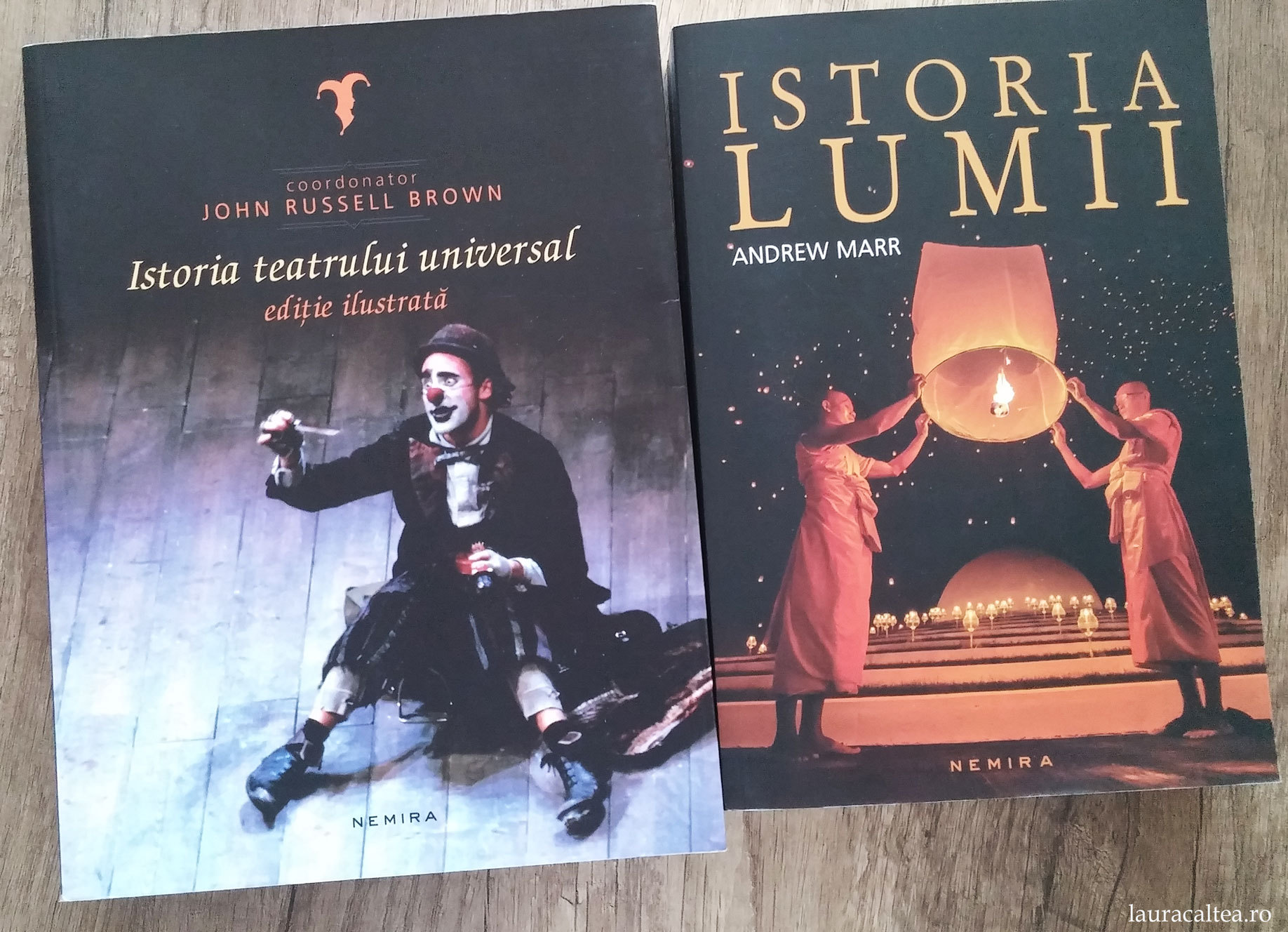 • Cărți fundamentale. Printre cărțile pe care e musai să le ai în bibliotecă, ca să le poți răsfoi oricând și să le lași moștenire nepoților, se numără în mod clar și Istoria teatrului universal, o ediție Oxford a teatrului de la origini până azi, și Istoria lumii, de Andrew Marr, un volum complex, dar scris într-un stil accesibil și plin de informații interesante.
